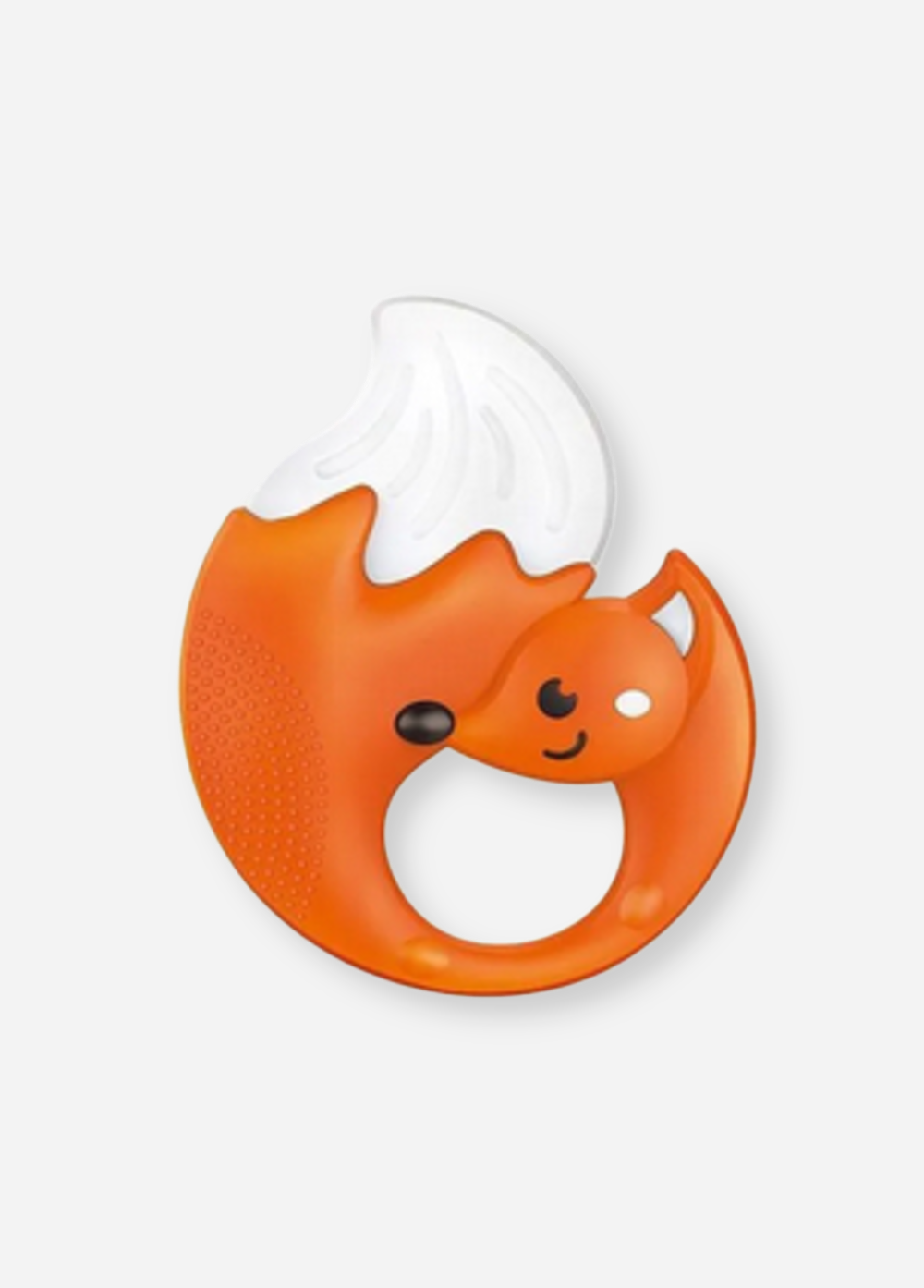 Deze vos bijtring is niet alleen schattig om te zien, maar ook heerlijk om op te sabbelen en kauwen. Het vrolijke vosje met zijn zachte texturen helpt het pijnlijke tandvlees van je baby te verzachten en stimuleert tegelijkertijd de tastzin en motorische vaardigheden. Dankzij de ronde vorm ligt de bijtring goed in kleine handjes en is hij makkelijk vast te houden. Geschikt vanaf 3 maanden – ideaal voor de eerste tandjes!